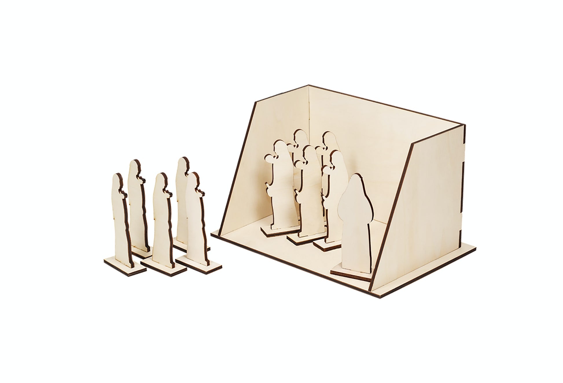 Livré avec 11 personnages en bois.